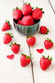 świeże truskawki jako romantyczny deser na płytce w sercu sha