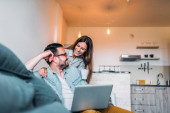 Uśmiechający się para korzystających weekend w domu.