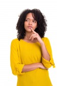 Piękny młody Afryki biznes kobieta na białym tle pozowanie na białym