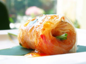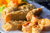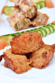 Zbliżenie na skórze głębokie smażona fasola twaróg faszerowane kumkwat