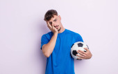 Zdjęcie "Piłka nożna Fan frustracji. Zdewastowane kaukaski kibic Euro w jego 30s na boisko do piłki nożnej." może być wykorzystywane do celów osobistych i komercyjnych zgodnie z warunkami zakupionej licencji Royalty-free. Obraz jest dostępny do pobrania w jakości wysokiej rozdzielczości do 5760x3840.