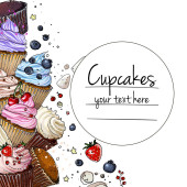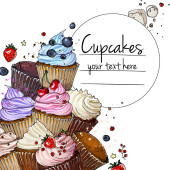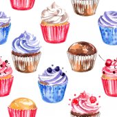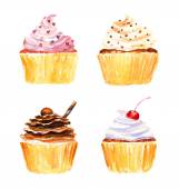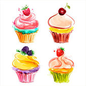 Babeczki, pomalowane farbami na białym tle