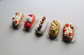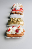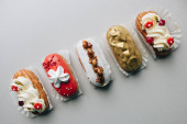 inne pyszne słodycze na szarym tle