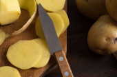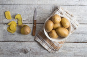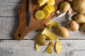 Zdjęcie "Obrane ziemniaki na drewnianym stołem" może być wykorzystywane do celów osobistych i komercyjnych zgodnie z warunkami zakupionej licencji Royalty-free. Obraz jest dostępny do pobrania w jakości wysokiej rozdzielczości do 5760x3840.