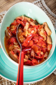 Lecho - smaczny węgierski gulasz z papryką i kiełbasą.