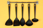 czarny naczynia na srebrne haczyki, na zielonym tle