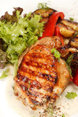 Zdjęcie "grillowanego kurczaka z sałatką, zbliżenie" może być wykorzystywane do celów osobistych i komercyjnych zgodnie z warunkami zakupionej licencji Royalty-free. Obraz jest dostępny do pobrania w jakości wysokiej rozdzielczości do 5760x3840.