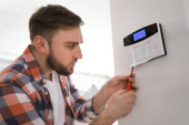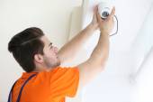 Technika instalacja kamery Cctv na ścianie w pomieszczeniu