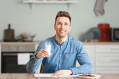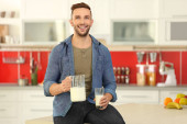 Zdjęcie "Młody człowiek ze szkła o smaczne mleko w domu" może być wykorzystywane do celów osobistych i komercyjnych zgodnie z warunkami zakupionej licencji Royalty-free. Obraz jest dostępny do pobrania w jakości wysokiej rozdzielczości do 5760x3840.