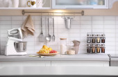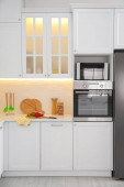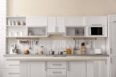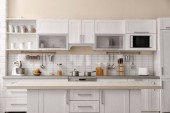 Zdjęcie "Nowoczesna kuchnia wnętrz z nowe meble i AGD" może być wykorzystywane do celów osobistych i komercyjnych zgodnie z warunkami zakupionej licencji Royalty-free. Obraz jest dostępny do pobrania w jakości wysokiej rozdzielczości do 5760x3840.