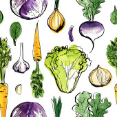 Wzór malowane kolorowe warzywa linię narysowaną na białym