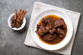 Zdjęcie "Wieprzowina duszona z ziela - styl tradycyjnej żywności Tajlandia Phuket" może być wykorzystywane do celów osobistych i komercyjnych zgodnie z warunkami zakupionej licencji Royalty-free. Obraz jest dostępny do pobrania w jakości wysokiej rozdzielczości do 5760x3840.