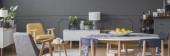 Zdjęcie "Wnętrza pokoi szary, różowy i niebieski obraz, drewniany stół i Komoda" może być wykorzystywane do celów osobistych i komercyjnych zgodnie z warunkami zakupionej licencji Royalty-free. Obraz jest dostępny do pobrania w jakości wysokiej rozdzielczości do 5760x3840.