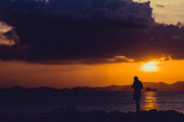 Zdjęcie "Fantastyczne i wspaniałe kolorowe pomarańczowy zachód słońca i refleksje z widokiem na wyspy w wodach Adriatyku wybrzeże z Dubrownik Chorwacja z sylwetki fotografów robienia zdjęć." może być wykorzystywane do celów osobistych i komercyjnych zgodnie z warunkami zakupionej licencji Royalty-free. Obraz jest dostępny do pobrania w jakości wysokiej rozdzielczości do 5760x3840.