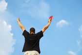 Zdjęcie "młody człowiek z uniesionymi rękoma" może być wykorzystywane do celów osobistych i komercyjnych zgodnie z warunkami zakupionej licencji Royalty-free. Obraz jest dostępny do pobrania w jakości wysokiej rozdzielczości do 5760x3840.