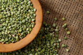 Zdjęcie "Surowy groszek na drewnianej tablicy nad serweta płótnie, zbliżenie, Selektywny fokus, widok z góry." może być wykorzystywane do celów osobistych i komercyjnych zgodnie z warunkami zakupionej licencji Royalty-free. Obraz jest dostępny do pobrania w jakości wysokiej rozdzielczości do 5760x3840.
