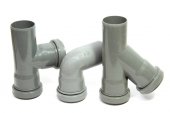 Kompozycja z rur kanalizacyjnych z tworzyw sztucznych, na białym tle