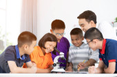 Zdjęcie "Azjatycki nauczyciel rozwija do ucznia w klasie biologii z mikroskopem ." może być wykorzystywane do celów osobistych i komercyjnych zgodnie z warunkami zakupionej licencji Royalty-free. Obraz jest dostępny do pobrania w jakości wysokiej rozdzielczości do 5760x3840.