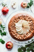 Widok z góry układanych jabłek szarlotka i świeże z zielonych liści na powierzchni drewnianych