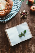 Widok z góry jabłecznik i filiżankę kawy na drewnianym blatem