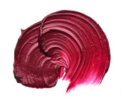 Ciemny czerwony wymaz z matowym błyszczyk na białym tle. Czerwona szminka kremowa tekstura na białym tle