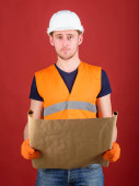 Zdjęcie "Złota rączka, fachowca na ścisłe twarz idzie i niesie ze sobą torby z profesjonalnego sprzętu. Koncepcja profesjonalnych mechanik. Człowiek w kask, kask posiada przybornika i walizkę z narzędzia, niebieskie tło" może być wykorzystywane do celów osobistych i komercyjnych zgodnie z warunkami zakupionej licencji Royalty-free. Obraz jest dostępny do pobrania w jakości wysokiej rozdzielczości do 5760x3840.