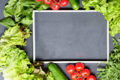 Zdrowe warzywa i czarny deska na podłoże drewniane