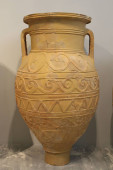 Heraklion, Grecja - Circa maja 2018 r. Duży wazon z owiec w Muzeum Archeologiczne