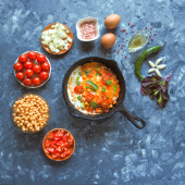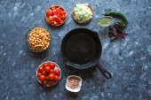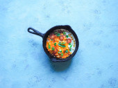 Jajecznica z ciecierzycy i pomidory na starych pan