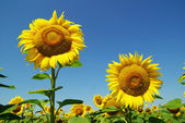 Żółte słoneczniki rosną na polu. Uprawy rolne.