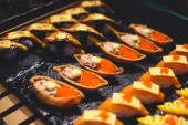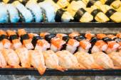Urządzone bez wyżywienia stole bankietowym z różnych sushi i nigiri sushi płyta asortyment na części