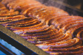 Zdjęcie "Pieczona wieprzowina Golonka eisbein chrupiące wieprzowych na Targ uliczny, Budapeszt, Hungar" może być wykorzystywane do celów osobistych i komercyjnych zgodnie z warunkami zakupionej licencji Royalty-free. Obraz jest dostępny do pobrania w jakości wysokiej rozdzielczości do 5760x3840.