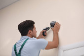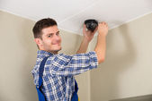 technik instalowanie kamery cctv na suficie w pomieszczeniach