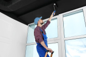Zdjęcie "technik instalowanie kamery cctv na suficie w pomieszczeniach" może być wykorzystywane do celów osobistych i komercyjnych zgodnie z warunkami zakupionej licencji Royalty-free. Obraz jest dostępny do pobrania w jakości wysokiej rozdzielczości do 5760x3840.