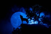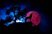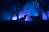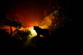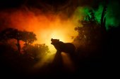 Zdjęcie "Horror widok wielki niedźwiedź w lesie w nocy. Wściekły niedźwiedź za zachmurzone niebo ogień. Sylwetka niedźwiedzia w ciemnym tle Mglisty las" może być wykorzystywane do celów osobistych i komercyjnych zgodnie z warunkami zakupionej licencji Royalty-free. Obraz jest dostępny do pobrania w jakości wysokiej rozdzielczości do 5760x3840.