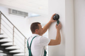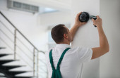 Technika instalacja kamery Cctv na ścianie w pomieszczeniu