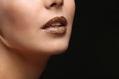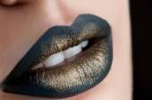 Piękny model młody z creative usta makijażem na czarnym tle