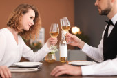 Nalewanie wina do kieliszka dla klienta w restauracji kelner