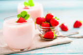 jedną porcję domowej roboty jogurt ze świeżymi jagodami
