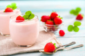 Zdjęcie "Dwie miski Jogurt truskawkowy na podłoże drewniane" może być wykorzystywane do celów osobistych i komercyjnych zgodnie z warunkami zakupionej licencji Royalty-free. Obraz jest dostępny do pobrania w jakości wysokiej rozdzielczości do 5760x3840.