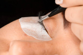 Młoda kobieta przechodzi rzęs rozszerzenie procedury, zbliżenie