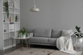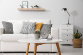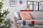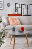Komfortowa sofa z miękkimi poduszkami w elegancki salon wnętrza