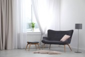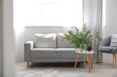 Zdjęcie "Wnętrz pokój dzienny z rozkładaną sofą i fotelem" może być wykorzystywane do celów osobistych i komercyjnych zgodnie z warunkami zakupionej licencji Royalty-free. Obraz jest dostępny do pobrania w jakości wysokiej rozdzielczości do 5760x3840.