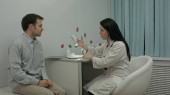 Technik RTG żeńskie analizując niektóre wyniki i notatek