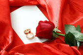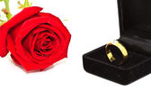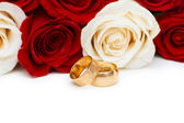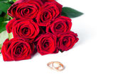 Dwie obrączki i czerwone róże