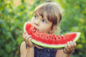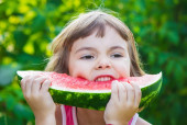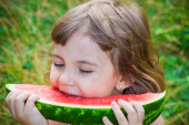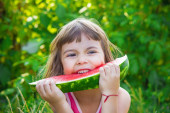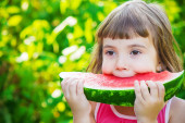 Zdjęcie "Dziecko je arbuza. Selektywny fokus." może być wykorzystywane do celów osobistych i komercyjnych zgodnie z warunkami zakupionej licencji Royalty-free. Obraz jest dostępny do pobrania w jakości wysokiej rozdzielczości do 5760x3840.