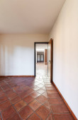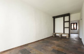 Biały i całkowicie pustym pokoju z drewna na suficie, nikt nie wewnątrz