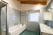 lat 80-tych w łazience kafelki i bardzo jasne okno. Nikt nie wewnątrz