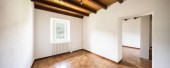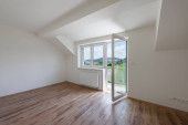 Biały i całkowicie pustym pokoju z drewna na suficie, nikt nie wewnątrz