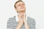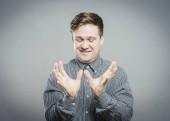 Młody człowiek kaukaski zmęczony i znudzony, geście, limit czasu.